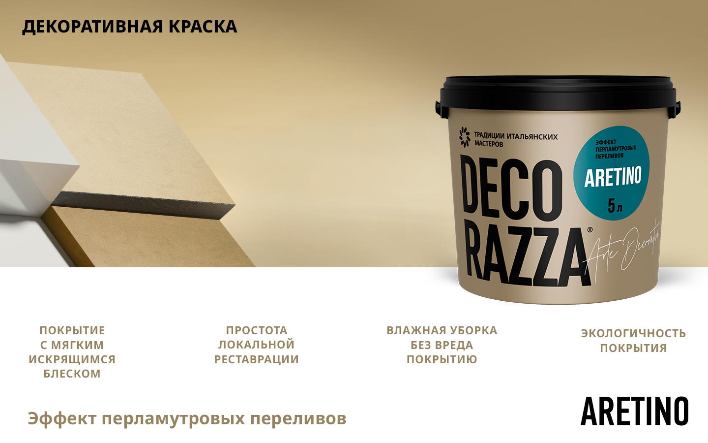 Декоративная краска ARETINO  -  Премиальное декоративное покрытие для интерьера с перламутровым эффектом от бренда Decorazza с доставкой по России!