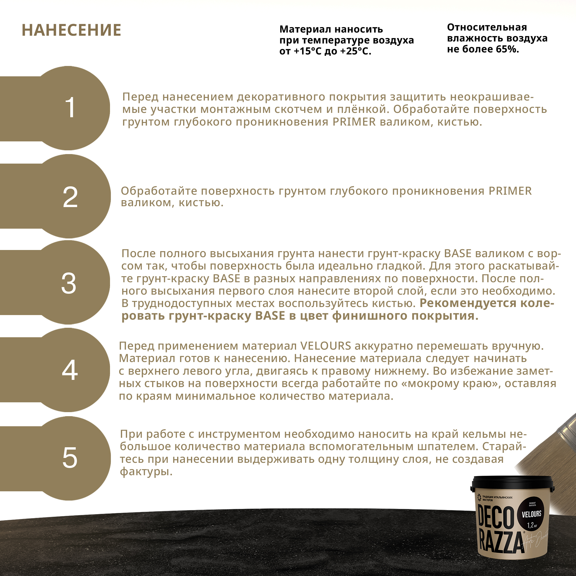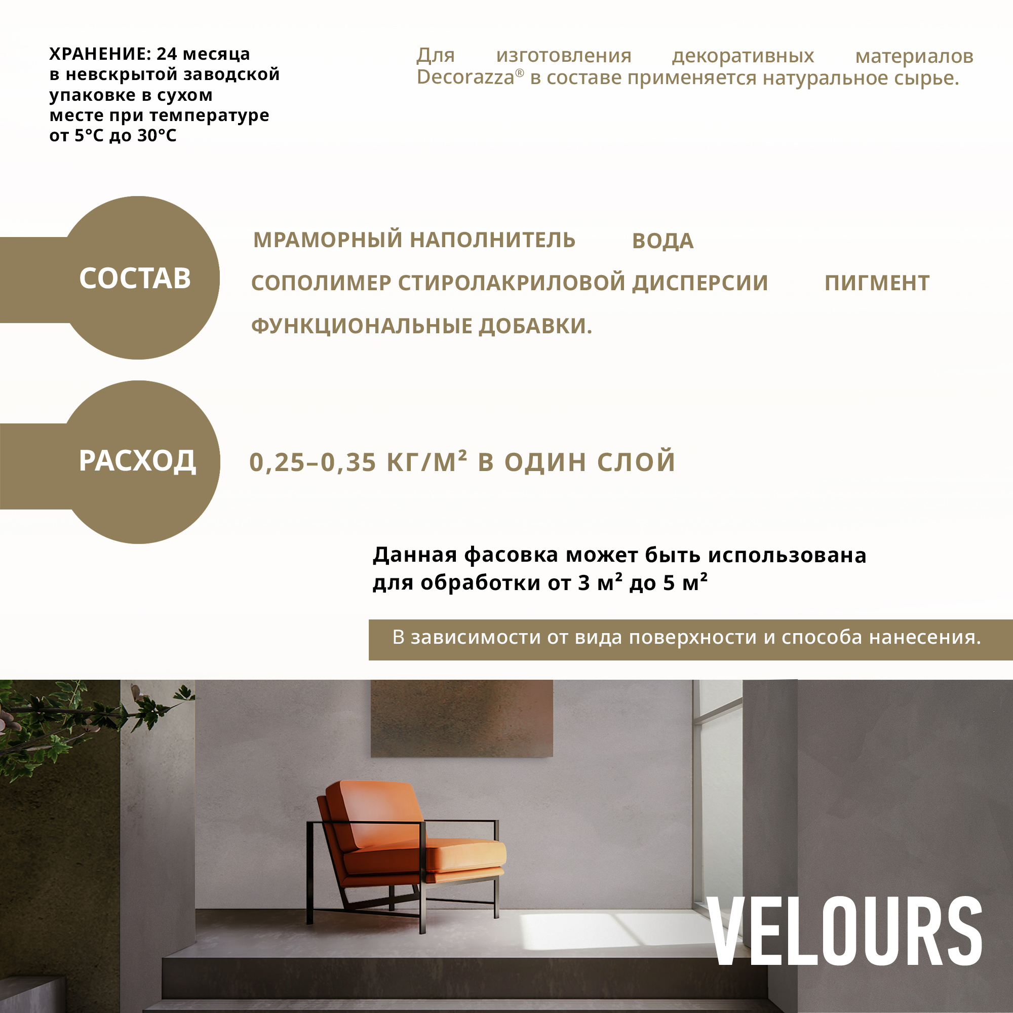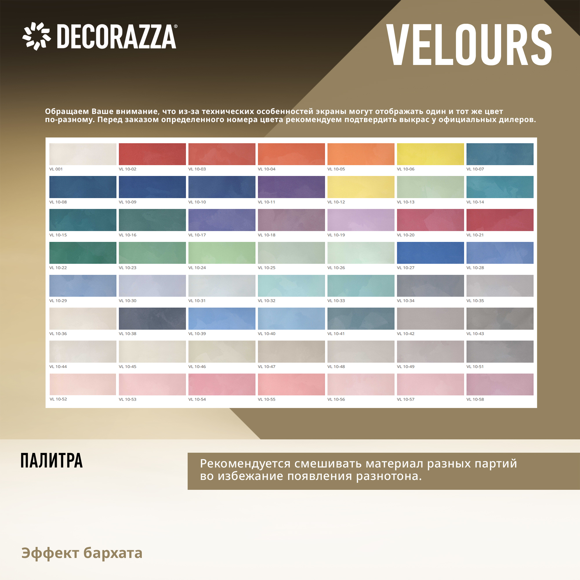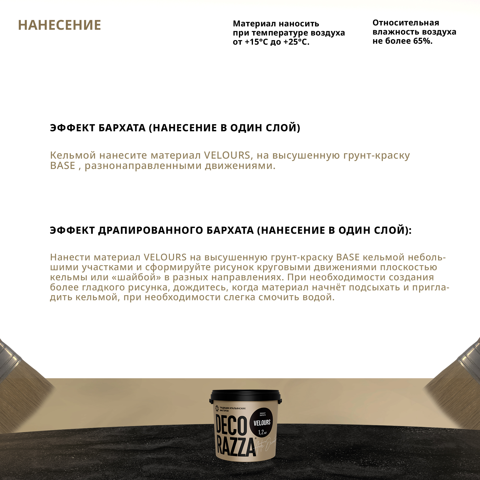 Декоративное покрытие VELOURS  -  Декоративное покрытие для формирования эффекта гладкой или драпированной бархатной поверхности от бренда Decorazza с доставкой по России!