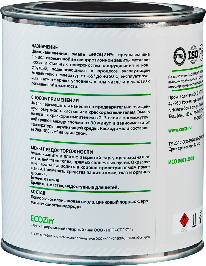 Эмаль цинконаполненная Экоцин  -  Быстросохнущий цинконаполненный грунт для долговременной антикоррозийной защиты металлических изделий от бренда Церта с доставкой по России!