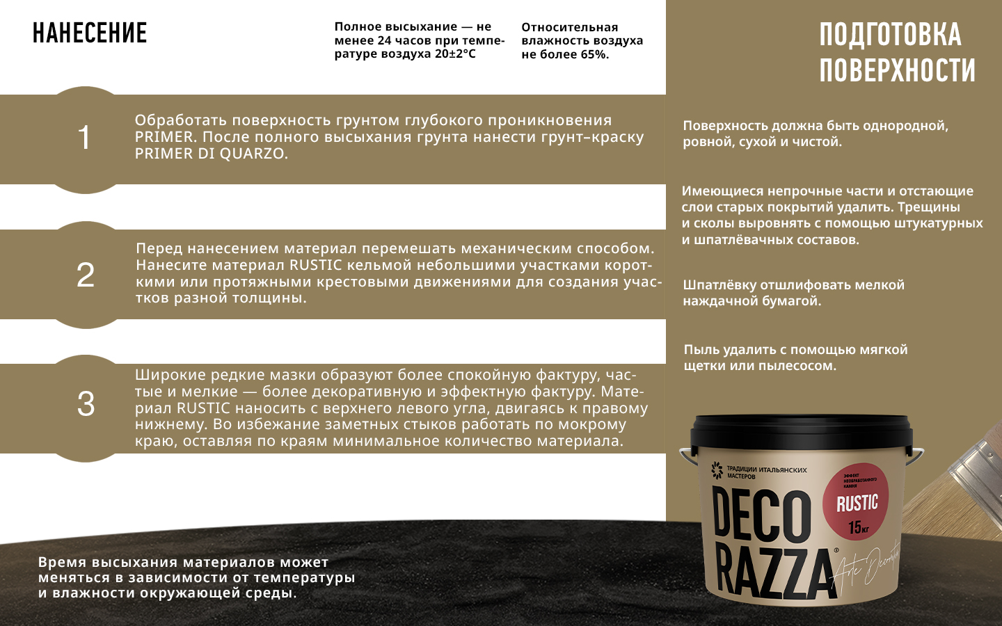 4. Перед нанесением, при необходимости, материал Rustic перемешать механическим способом. Материал готов к нанесению.