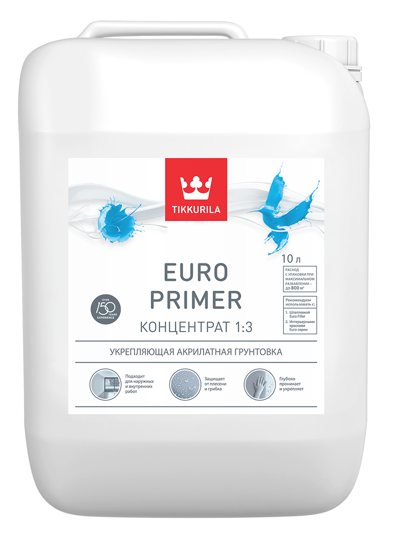 Грунт интерьерный EURO PRIMER - Акрилатная грунтовка для грунтования поверхностей перед интерьерной окраской в помещениях любого типа, а также для фасадных работ от бренда Tikkurila с доставкой по России!