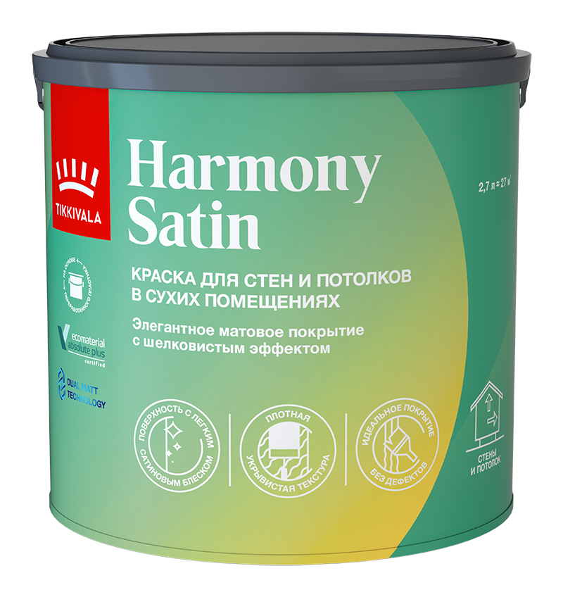 Интерьерная матовая краска HARMONY SATIN  -  Моющаяся краска для стен и потолков Tikkurila HARMONY SATIN Tikkurila HARMONY SATIN — это высококачественная воднодисперсионная краска с матовым и шелковистым эффектом, разработанная специально для отделки внутренних поверхностей стен и потолков. Её уникальное свойство — стойкость к мытью, что делает её идеальным выбором для жилых и офисных пространств, где важно поддерживать чистоту и свежесть. Эта экологичная краска не содержит вредных веществ и абсолютно без запаха, обеспечивая комфорт во время и после нанесения. Гармония Satin легко скроет неровности поверхности благодаря своей ровной и гладкой структуре, создавая уютную атмосферу в помещении. Благодаря своему изысканному матовому блеску, она добавляет интерьеру элегантность и мягкость, делая пространство более светлым и просторным. Выбирая Tikkurila Гармония Сатин, вы получаете гарантию долговечности и красоты вашего интерьера, а также заботу о здоровье вашей семьи или сотрудников. от бренда Tikkurila с доставкой по России!