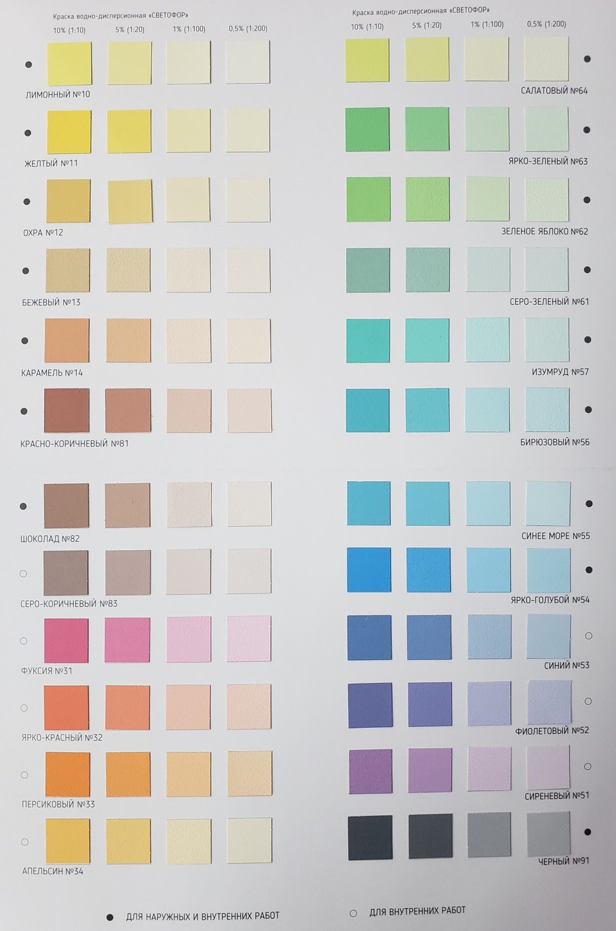 Каталог цветов СВЕТОФОР - для ручной колеровки красок колер-пастами "Светофор"