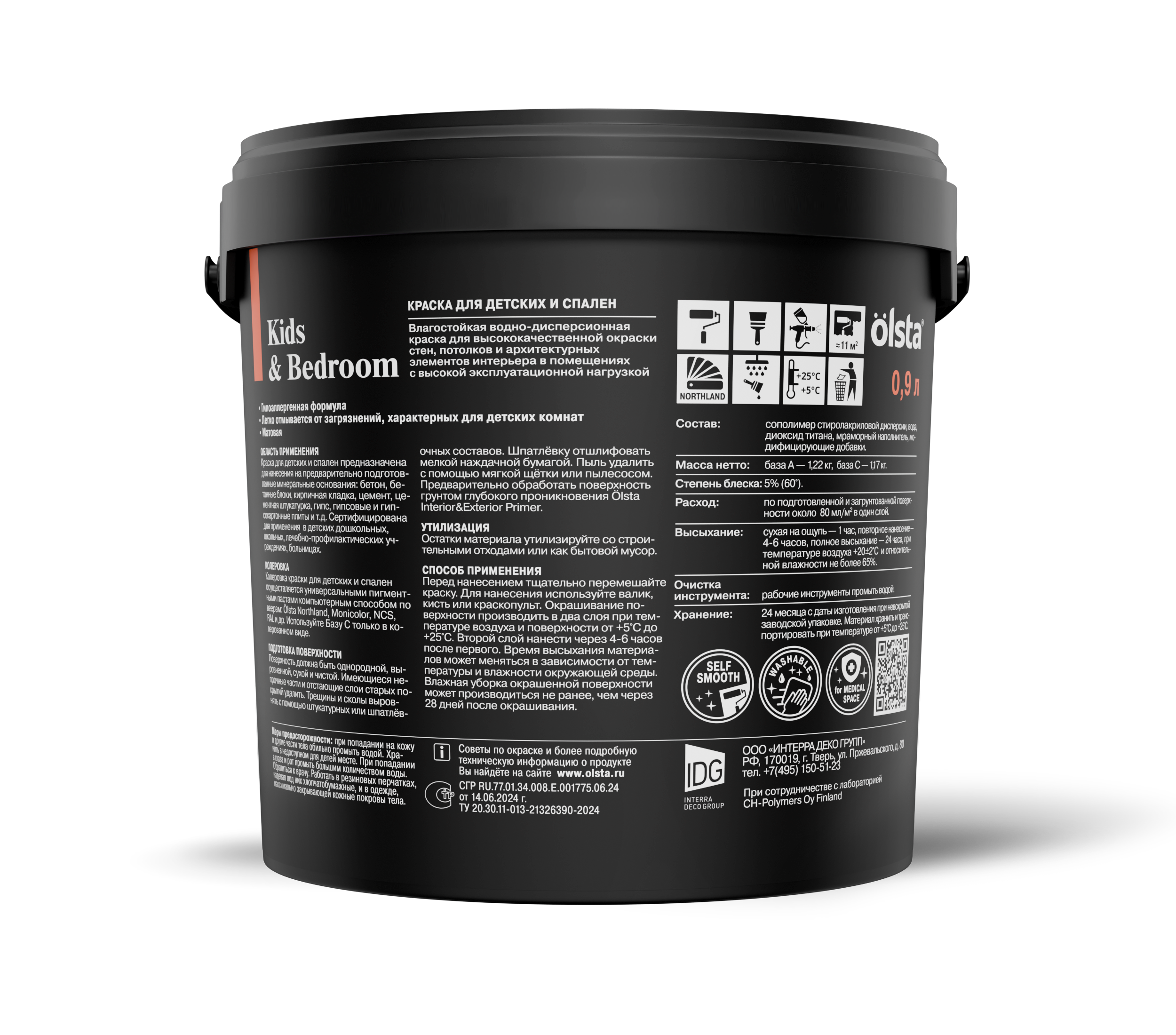 Краска для детских и спален Kids&bedroom - Гипоаллергенная антимикробная краска для стен и потолков в детских комнатах от бренда OLSTA с доставкой по России!