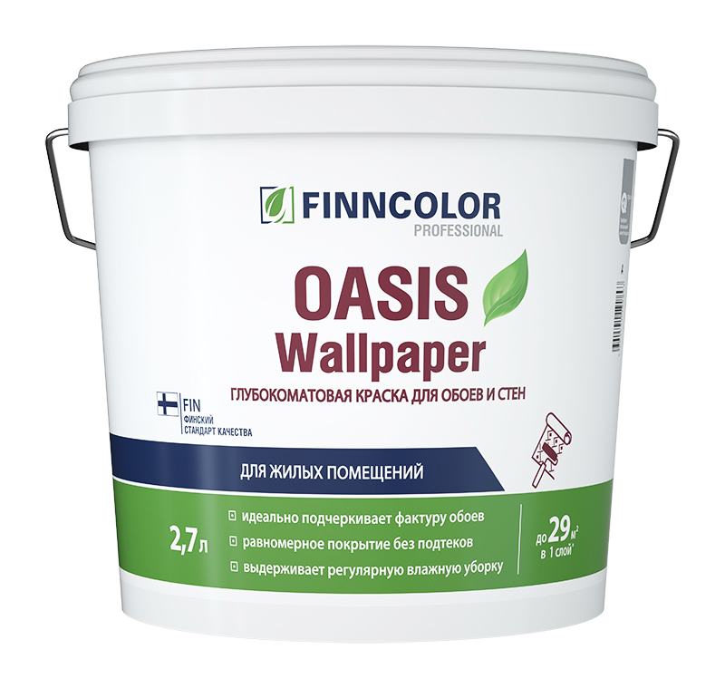 Краска для стен и обоев OASIS WALLPAPER - Моющаяся водно-дисперсионная акриловая краска для стен и обоев от бренда Finncolor с доставкой по России!
