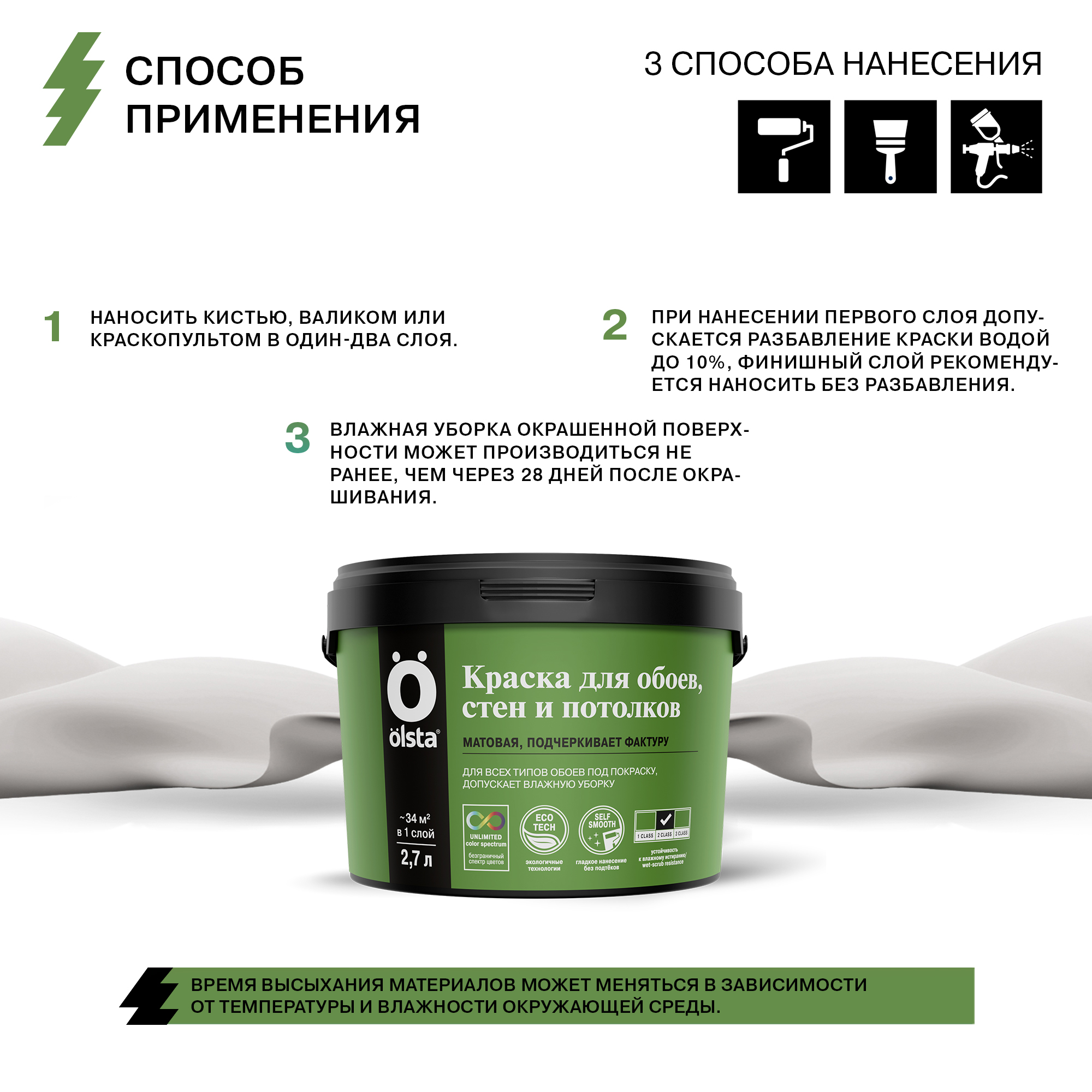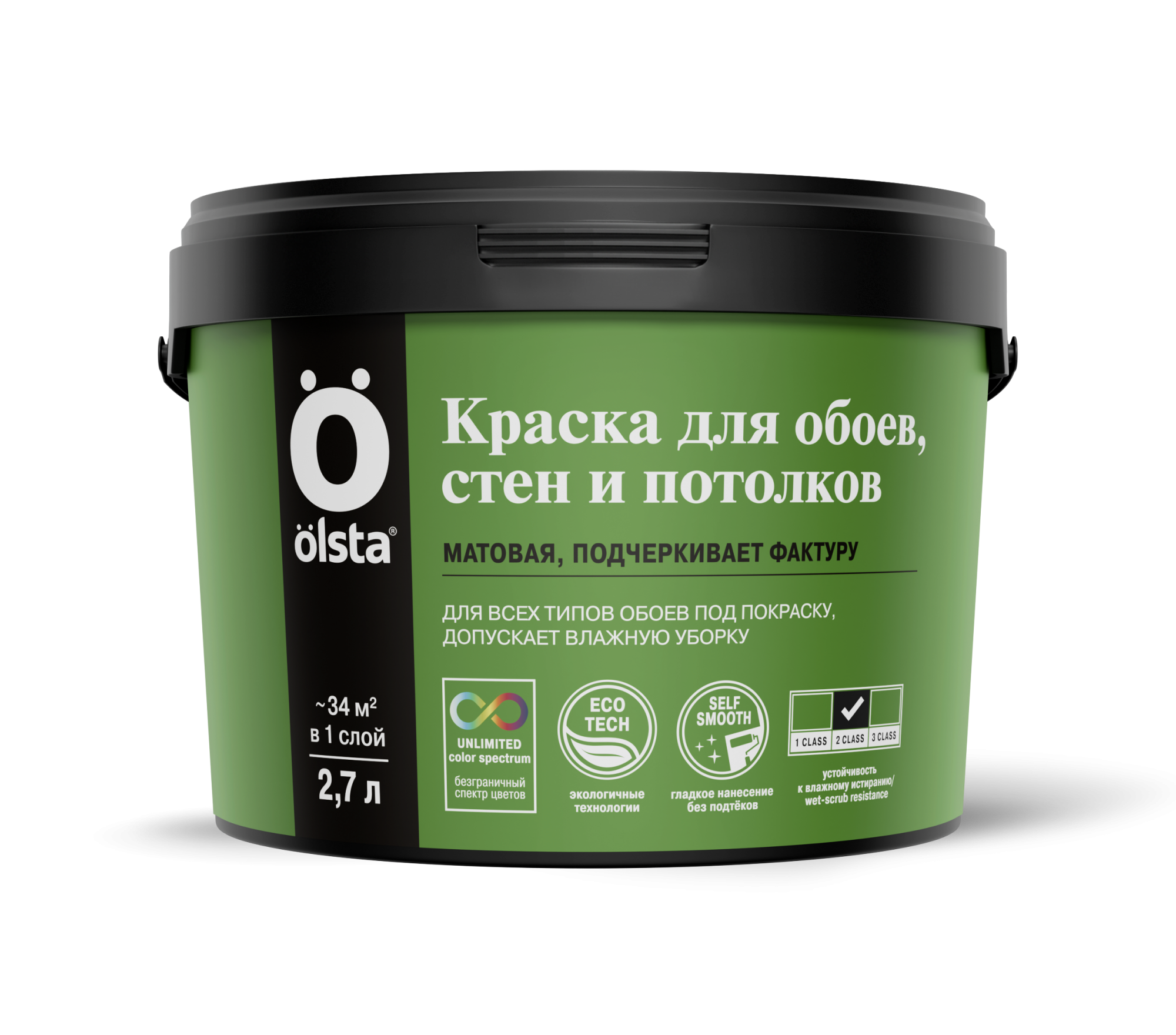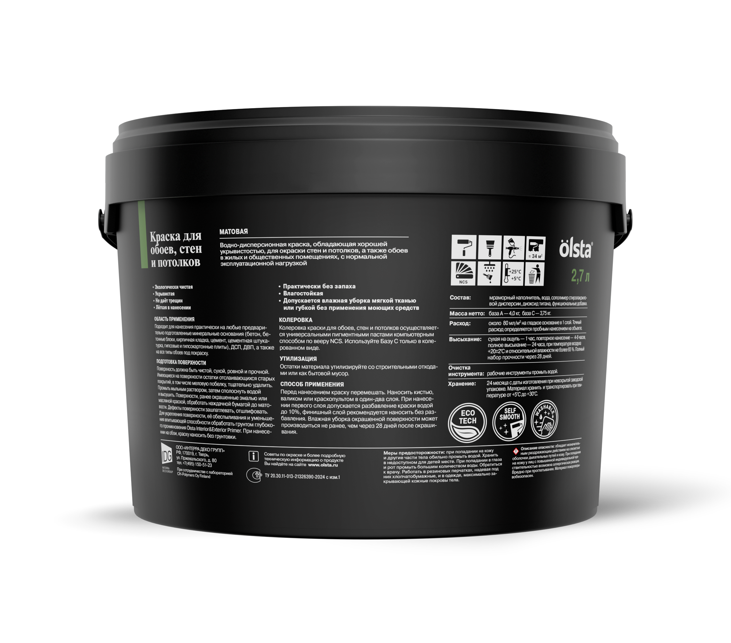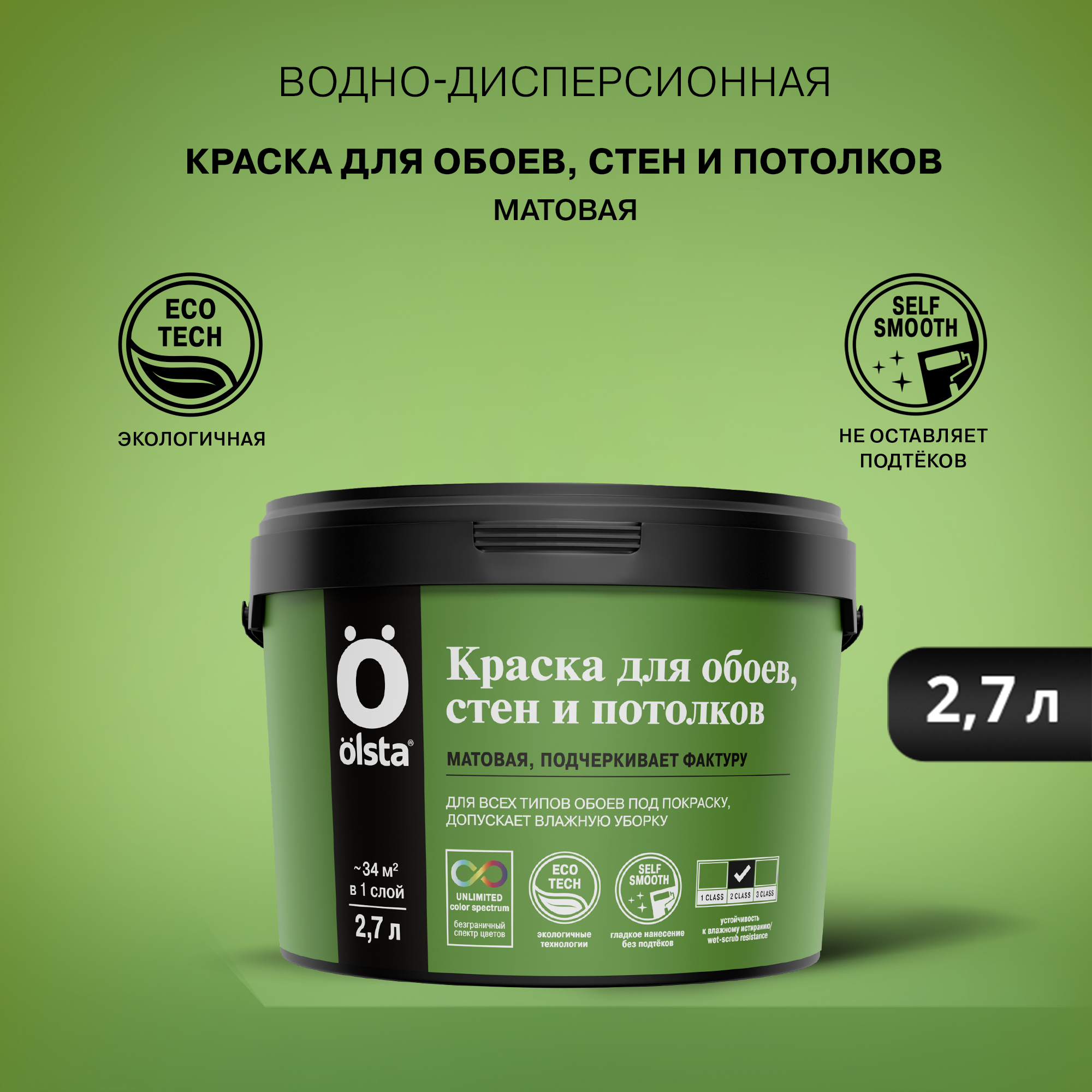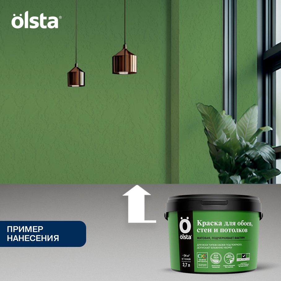 Краска для стен, обоев и потолков - Водно-дисперсионная краска, обладающая хорошей укрывистостью, предназначена для внутренней окраски стен и потолков, а также обоев в жилых и общественных помещениях. от бренда OLSTA с доставкой по России!