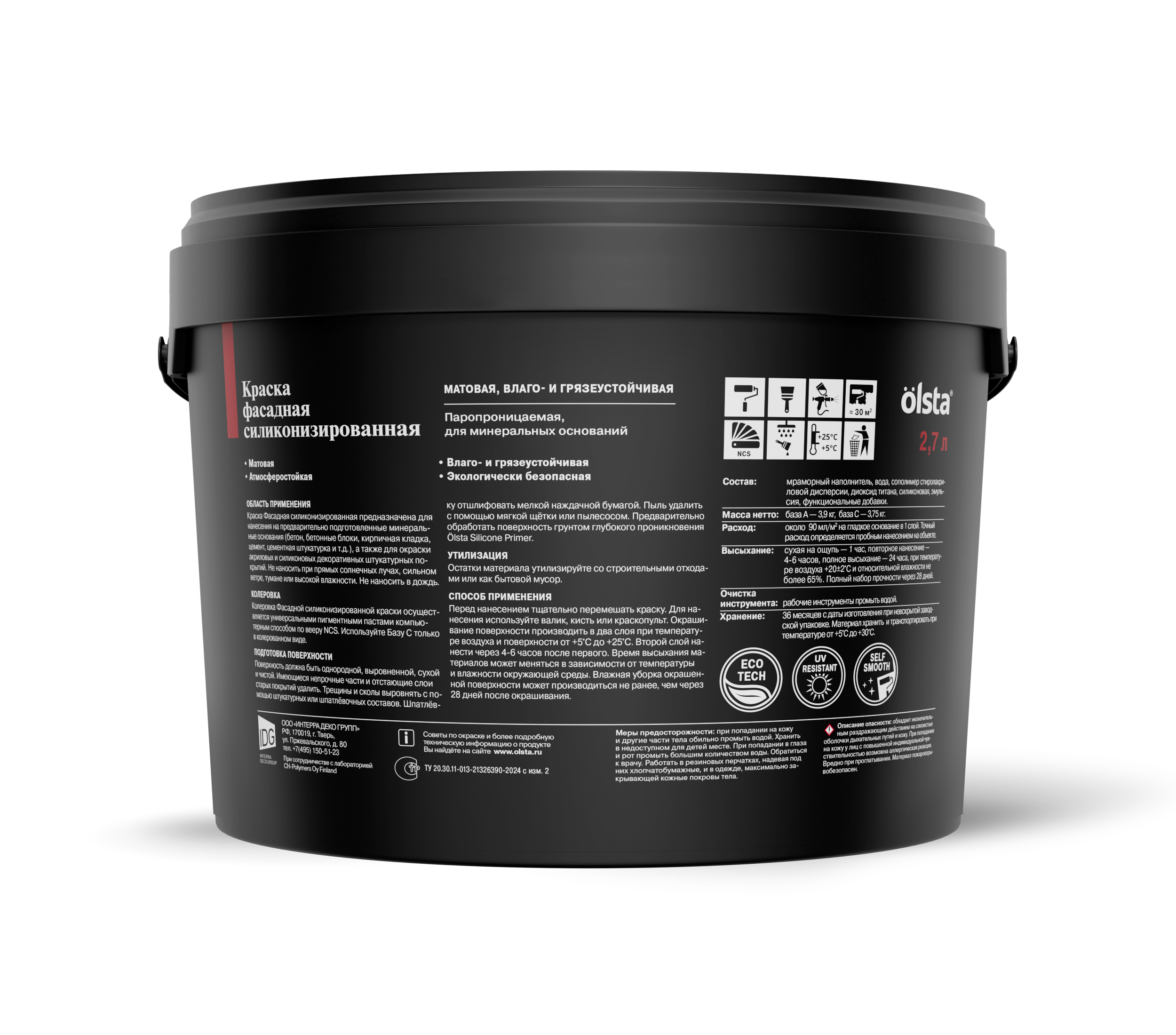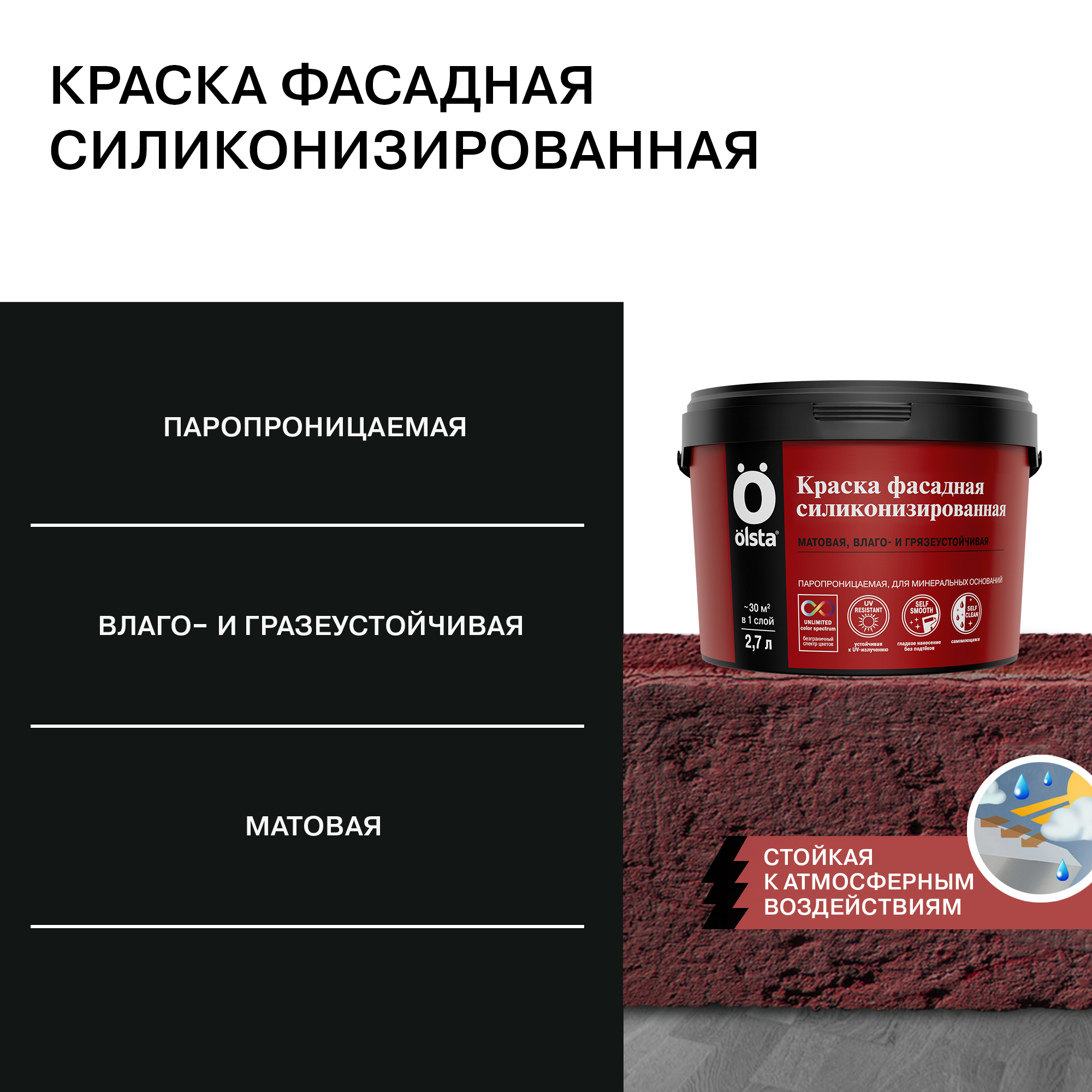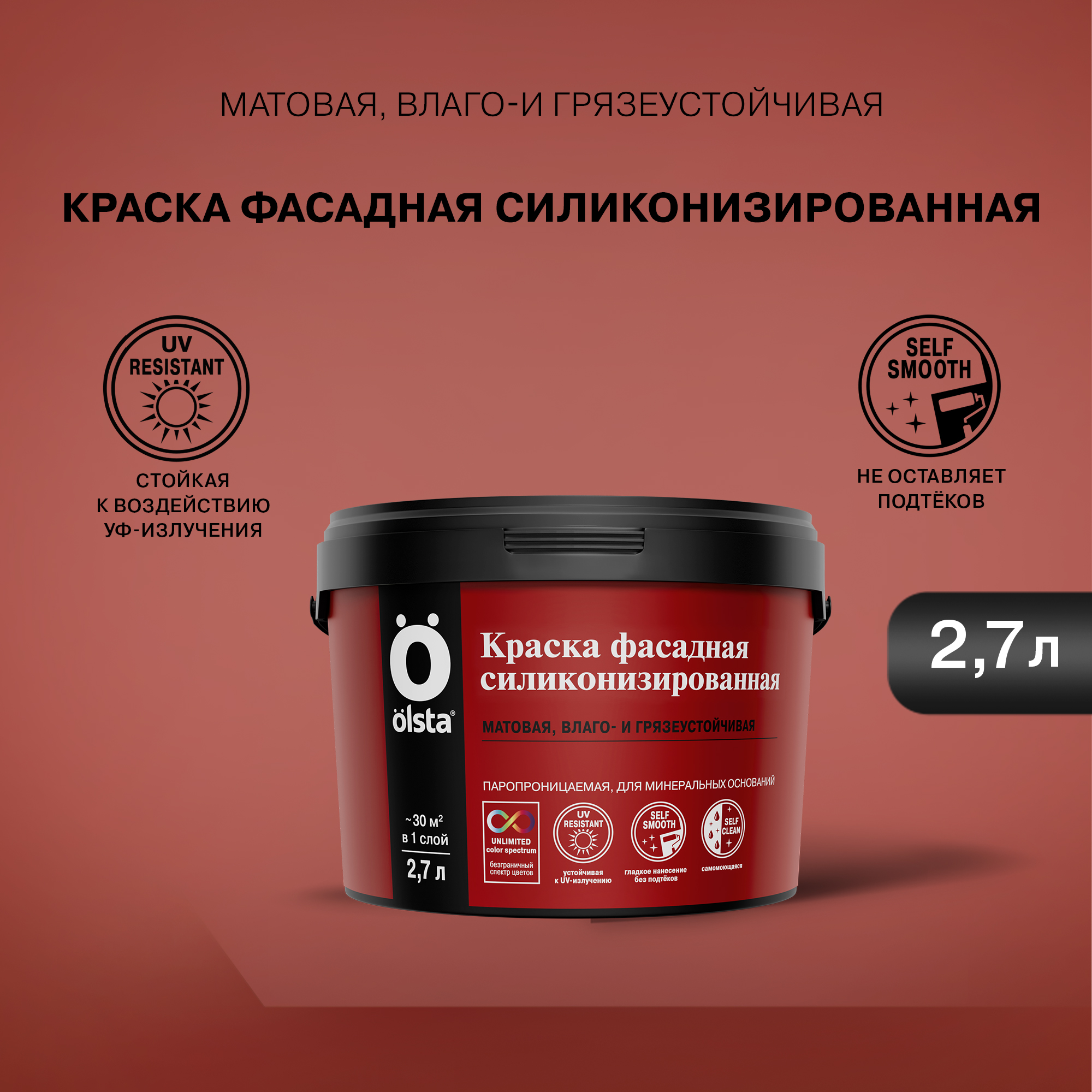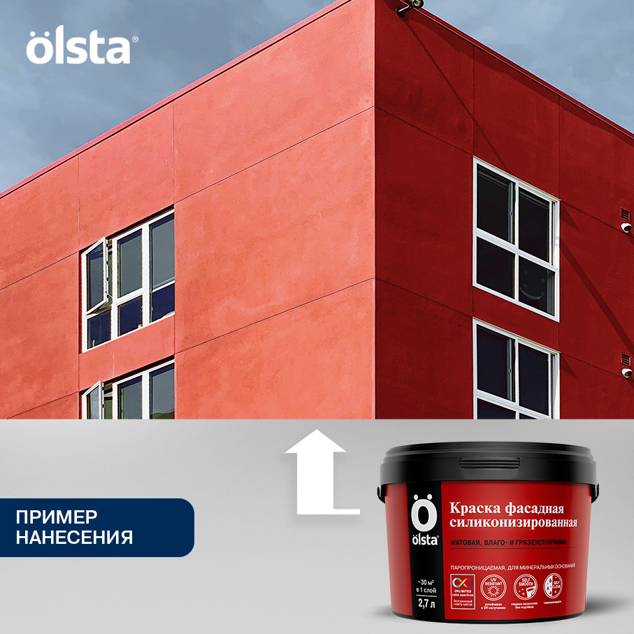 Краска фасадная силиконизированная  -  Влаго- и грязеустойчивая фасадная силиконизированная краска для минеральных поверхностей от бренда OLSTA с доставкой по России!
