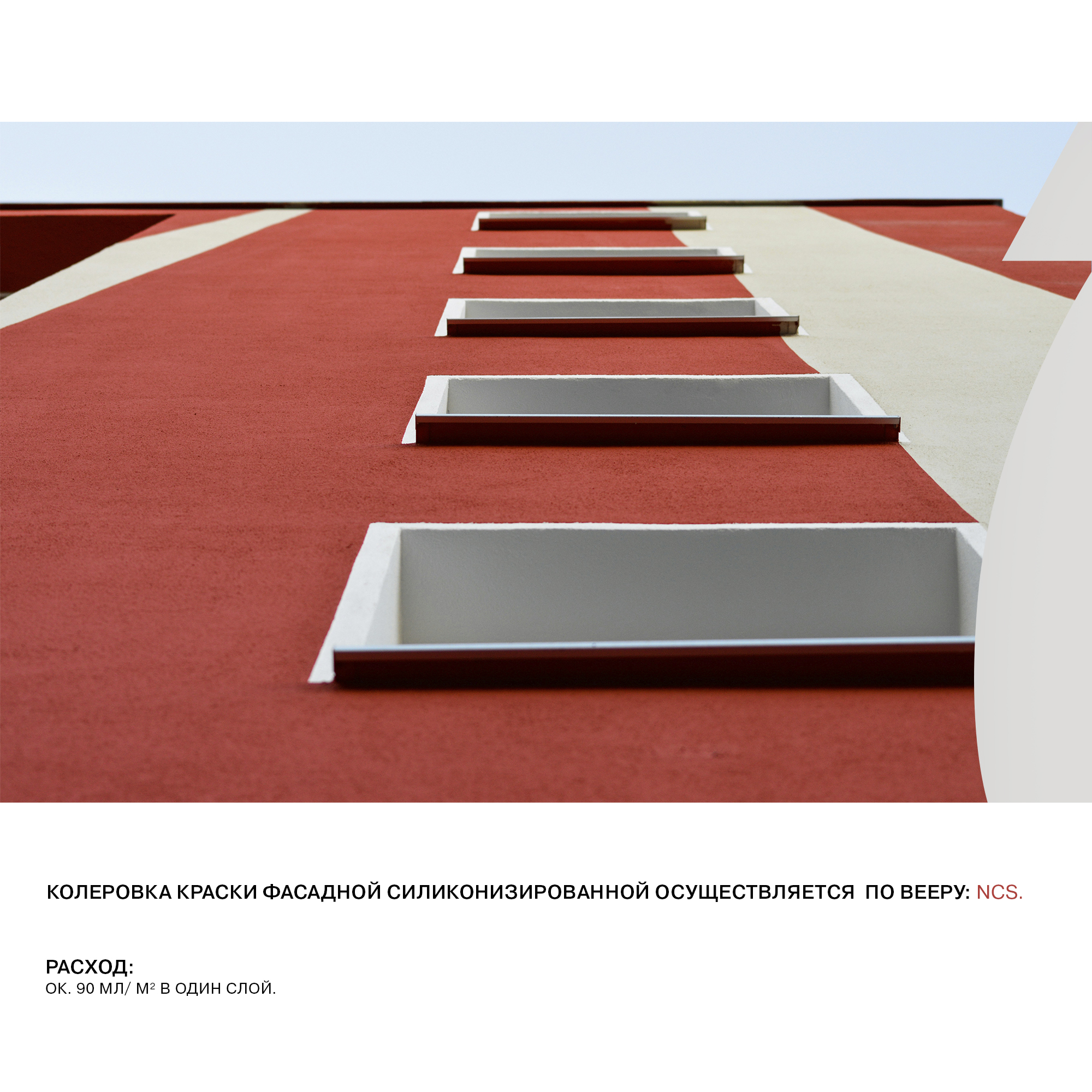 Краска фасадная силиконовая предназначена для нанесения на предварительно подготовленные минеральные основания: бетон, бетонные блоки, кирпичная кладка, цементная штукатурка и т.д. Не наносить при прямых солнечных лучах, сильном ветре, тумане или высокой влажности. Не наносить в дождь.