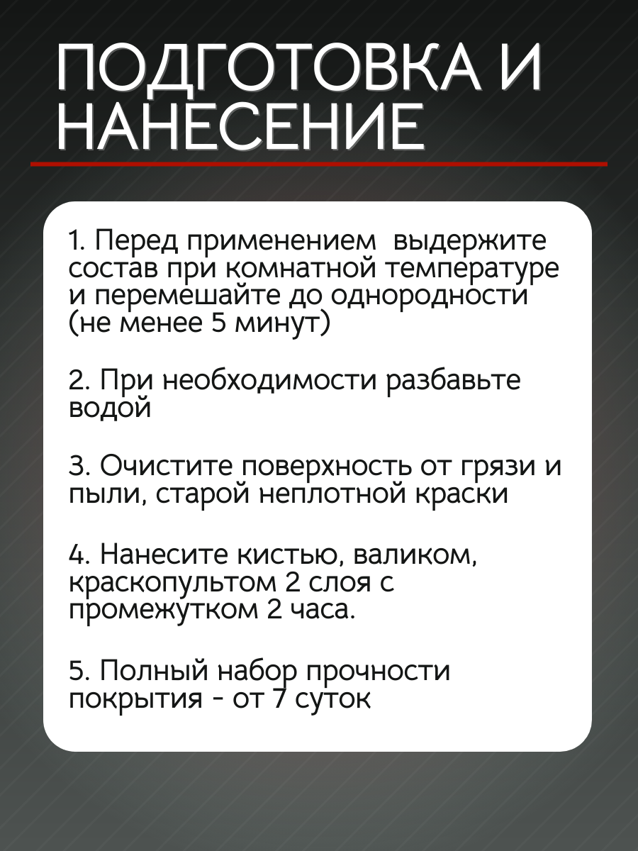 Перед применением эмаль тщательно перемешать, при необходимости разбавить чистой водой не более 5-7% от объема краски.