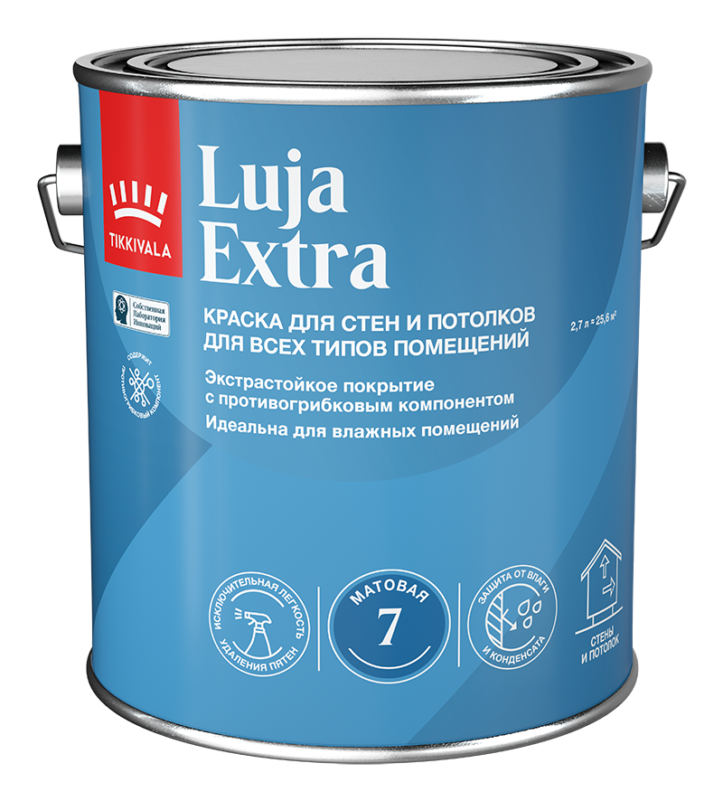LUJA EXTRA 7 - специальная акрилатная краска для влажных помещений. Содержит противоплесневый компонент.