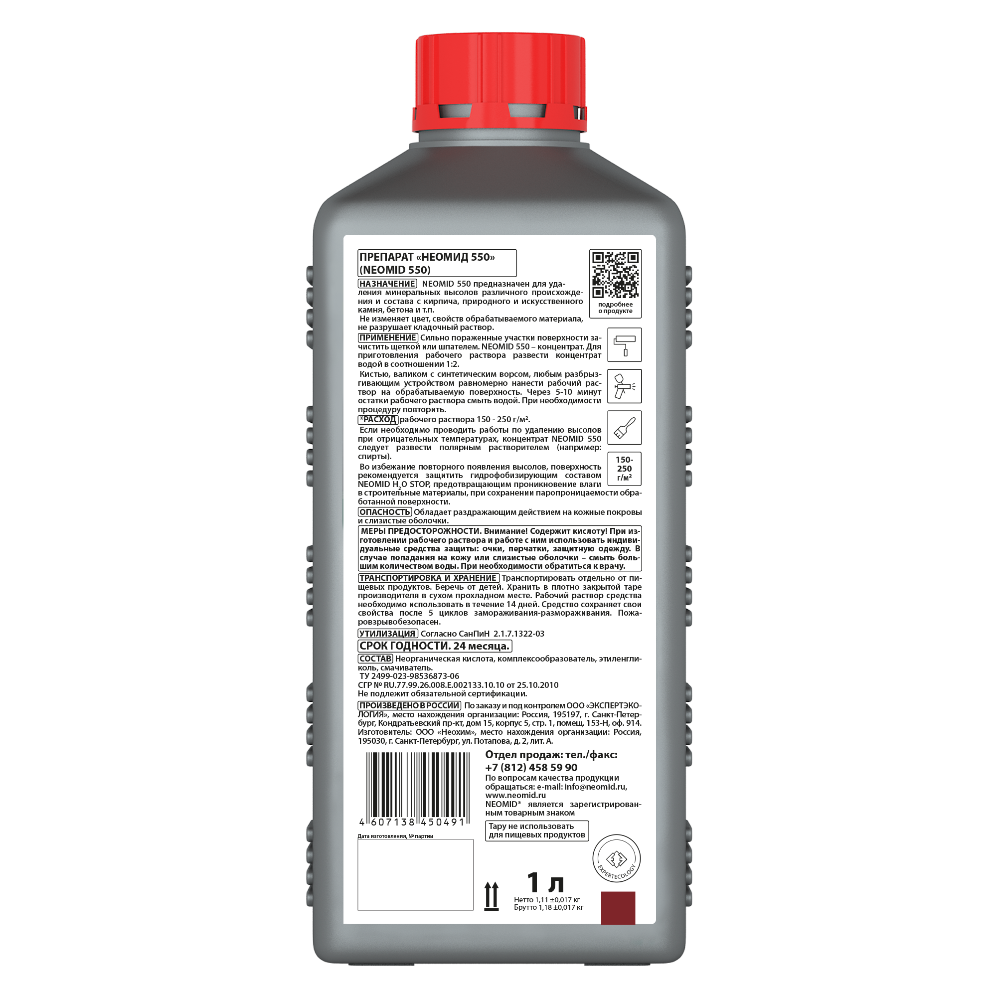NEOMID 550 антивысол концентрат  -  Очиститель минеральных высолов. Не изменяет цвет, свойств обрабатываемого материала, не разрушает кладочный раствор от бренда Neomid с доставкой по России!